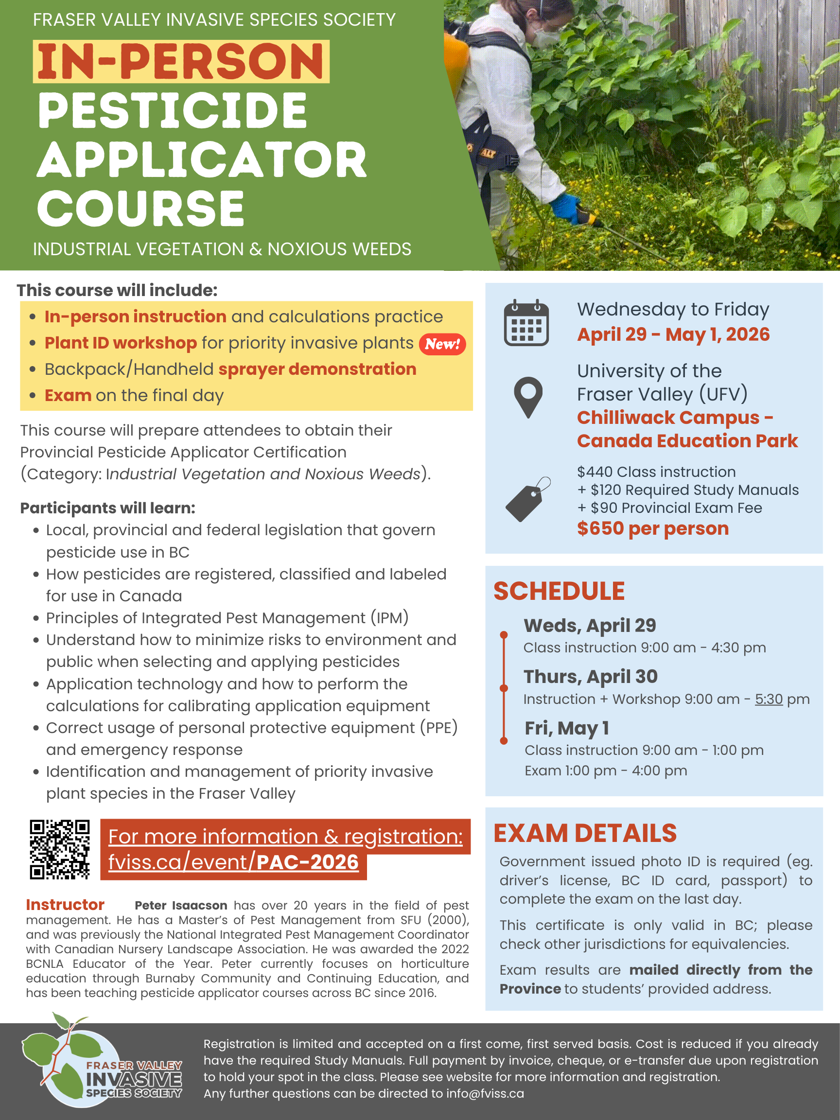 Completion of this workshop does not certify pesticide applicators - participants must pass the BC Government Pesticide Certification Exam on the final day to be certified.